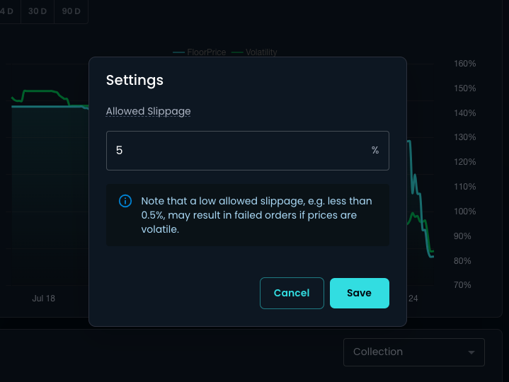 <figure><img src="https://1072128779-files.gitbook.io/~/files/v0/b/gitbook-x-prod.appspot.com/o/spaces%2FSUdriulTqYuL7BESCrnt%2Fuploads%2F95ktLKw7EDS8XnoHX2Y9%2Fv2-settings.png?alt=media&#x26;token=f65f7326-4dcd-4f98-8b67-dc9ccb8182dc" alt=""><figcaption><p>Setting slippage</p></figcaption></figure>